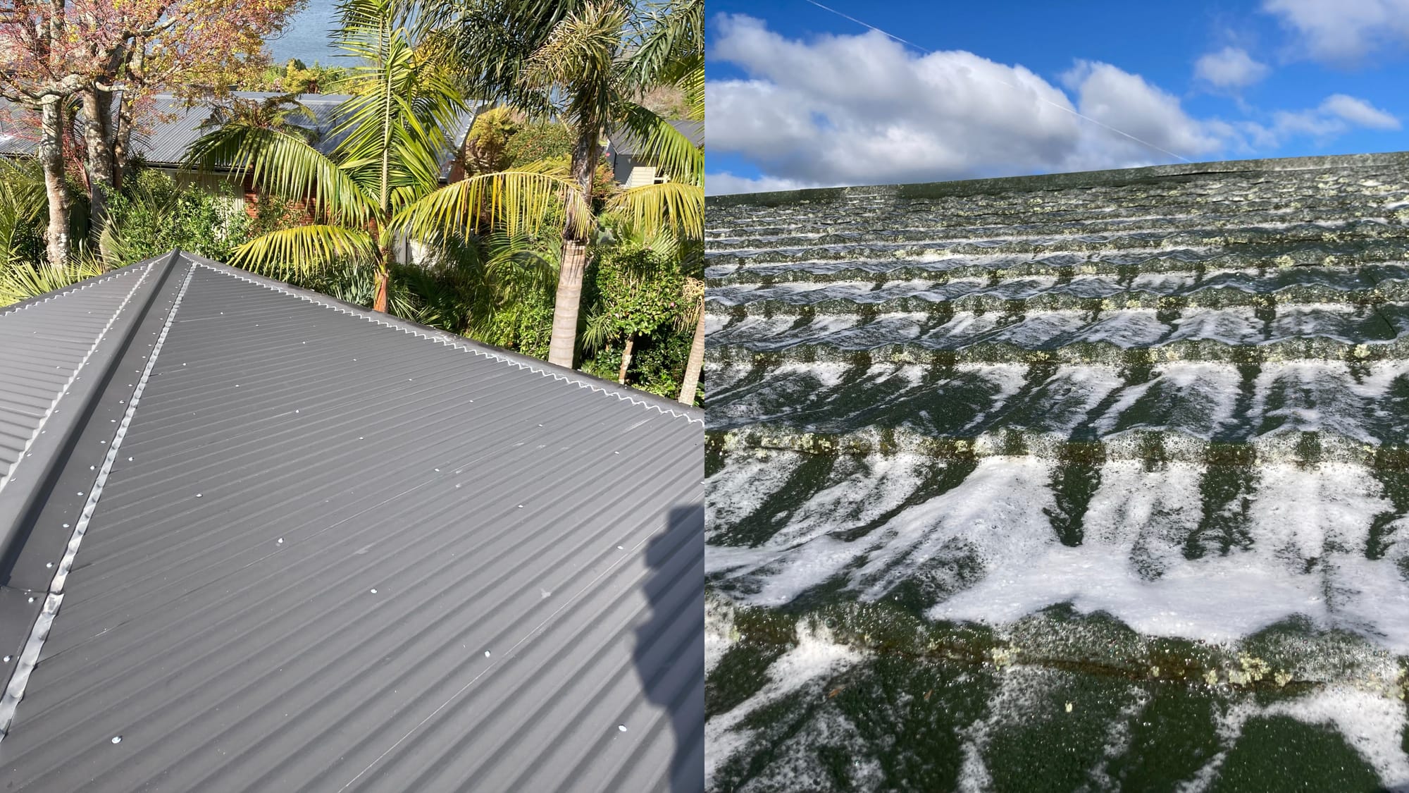- Soft-wash roof cleaning
